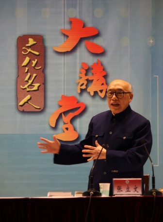 张立文教授长期致力于中国哲学和中国文化的教学与研究,率先提出或开创了“传统学”、“新人学”、“和合学”等学科体系,引起了广泛反响。演讲中,张教授以广博的学识、宏大的视野,超前的思维,深入浅出地阐释了“和合学”提出的时代背景、“和合学”的文化内涵与特征,以及“和合学”的现代价值,还就当前人类社会共同面临的“五大冲突”和“五大危机”,提出了化解思路。