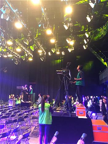 据了解,本次记者节晚会共由200多名跨学科、跨专业的学生和30多位指导老师共同组成晚会筹备组,经过两个多月的精心筹备方才得以呈现,无论是从总导演、制片人到策划、撰稿、节目导演,再到舞美、灯光,还有现场转播环节的导播、切像、摄像、音频、视频等岗位以及外联工作全都是由筹备组的学生记者们担任的。同时,为了这次晚会,有才的同学们还自己作词、作曲,创作出了属于学生记者节晚会的主题曲《青春印记》,展现了同学们在校园实践中的点点滴滴,更承载着他们对于中传的美好记忆。
