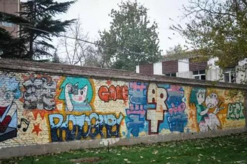 色彩明丽、图案大胆的涂鸦在强调个性的大学校园内早已屡见不鲜,我校西门外东街上的涂鸦一直以来都吸引着路人的目光,还是百度百科上明确标注的“北京最主要涂鸦集中地”之一。