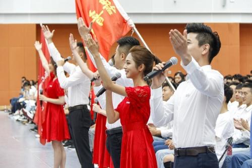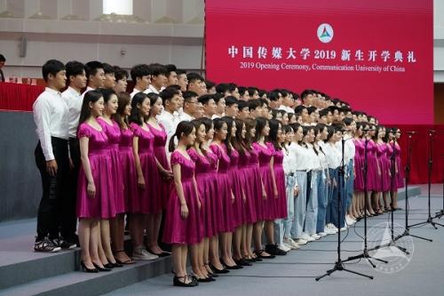 伴随着各位嘉宾精彩而富有内涵的发言,开学典礼接近尾声。播音主持艺术学院带来的诗朗诵《新时代的传媒人,新时代的中国青年》点燃了全场传媒新生的梦想与激情,康辉、朱广权等知名校友也在视频中向母校,向2019级新生送上了最真挚的告白与祝福。最终,开学典礼在全场师生合唱校歌《年轻的白杨》中落下帷幕。