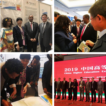 教育展的最后一站是埃塞俄比亚首都亚的斯亚贝巴。刘延平副校长与埃塞高教部部长Woldemsriam和副部长Afework Kassu Gizaw教授等高级官员进行了洽谈,介绍了埃塞学生在我校的留学情况。刘延平副校长表示,此次高等教育展将促进中埃两国人力资源领域的合作,有利于两国全面战略合作伙伴关系的发展,有助于吸引更多优秀的埃塞学生前往中国尤其是中传深造,进一步增进中非友谊。在亚的斯亚贝巴,刘延平副校长接受了中央电视台、新华社的采访,舒笑梅处长接受了CGTN记者的采访。
