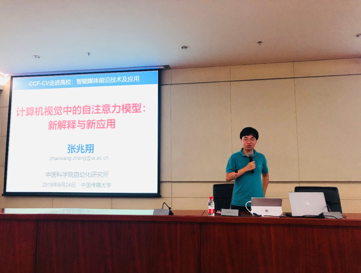 中国科学院自动化所张兆翔研究员做题为“计算机视觉中的自注意力模型:新解释与新应用”的报告。报告着重阐述了深度学习中的自注意力模型的新解释与新应用,结合近期开展的行人重识别与视频物体检测两个工作阐述了自注意力模型取得成功的关键与解释。