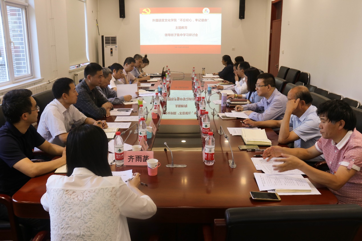学习研讨会上,外国语言文化学院党委书记陈江华介绍了学院主题教育学习研讨情况和学院制定的主题教育《活动方案》《学习安排》《调研工作安排》。近期,外国语言文化学院组织教工党员赴平型关纪念馆开展了“不忘初心、牢记使命”主题党日活动,组织学院理论中心组扩大会议集中学习,为深入开展主题教育活动进行了预热。