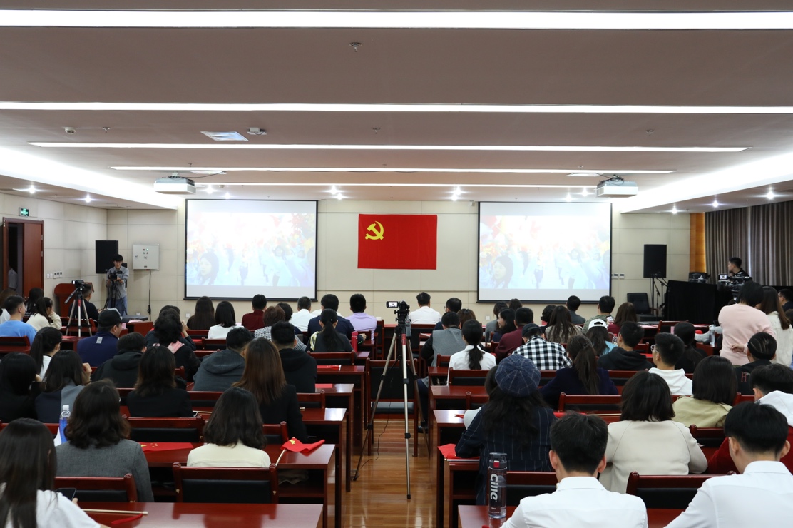 (通讯员 张师迅 摄影 施然)10月9日下午,播音主持艺术学院在明德楼报告厅举行《献给祖国的声音》“不忘初心,牢记使命——我和我的祖国”主题党日活动。教育部第三巡回指导组副组长翟志席、成员董俊敏,校党委副书记姜绪范,党委常委、组织部部长李众出席活动。我校第六指导组组长、保卫处处长张绍华,副组长、校纪委唐红梅,以及学院全体党员师生和部分入党积极分子参加活动。