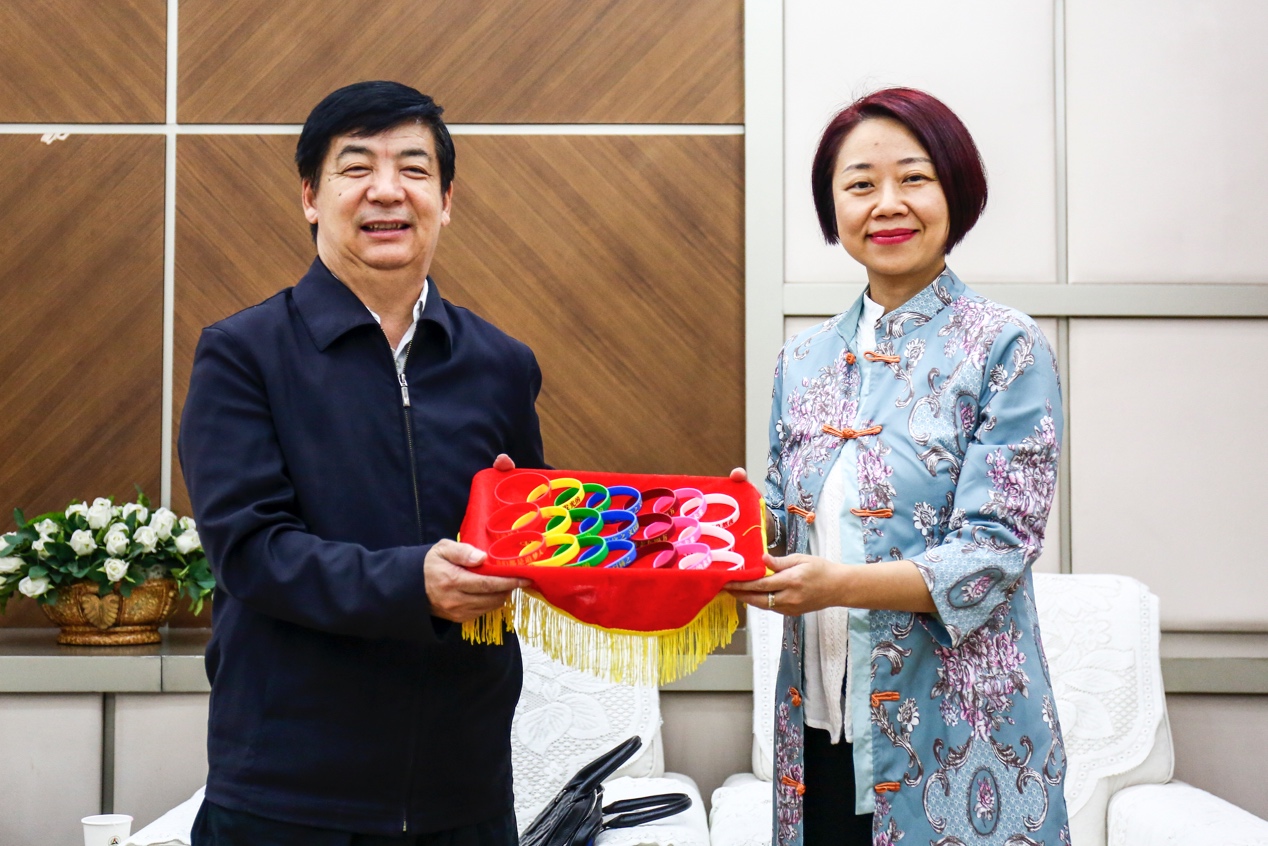 姜绪范副书记代表学校向外交部赠送“我是爱国好青年”主题手环