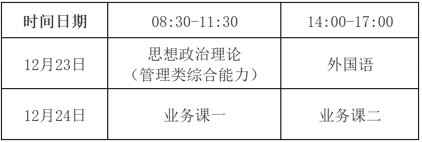 2024年全国硕士研究生招生考试初试将于2023年12月23日、24日举行。具体考试时间如下所示: