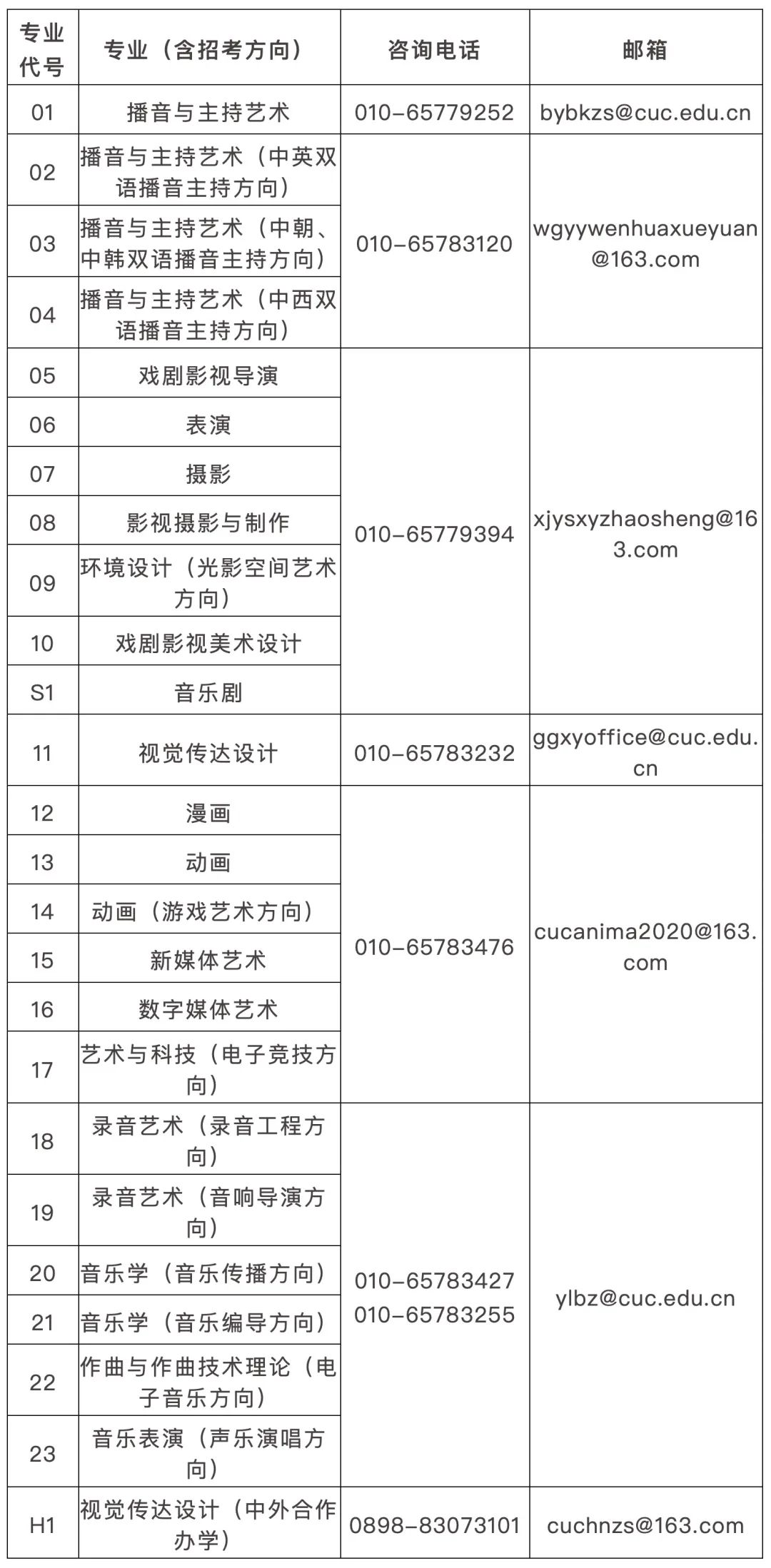 招生咨询邮箱:cuczsb@cuc.edu.cn