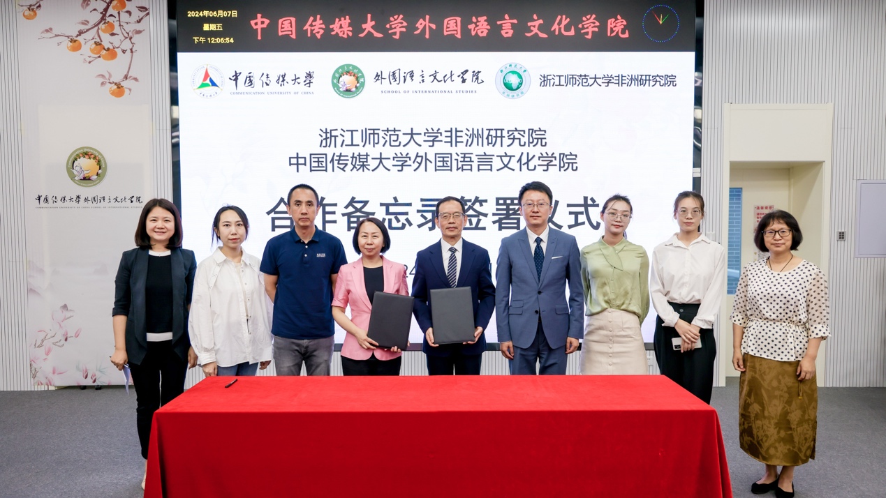 Beat365中文官方网站学科建设与发展规划处处长贾秀清、副处长顾洁,科学研究处副处长李玲飞,国内合作交流与合作处朱陶胤,外国语言文化学院党委副书记刘娇、副院长刘颖、谢飞,浙江师范大学非洲研究院李昭颖、孙欣等师生参加了签署仪式。
