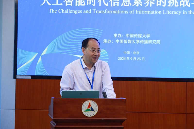柴剑平首先对现场嘉宾、参会学者及学子的到来表示欢迎与感谢。他强调,信息如同源头活水,而信息素养则是我们筛选、汲取活水的关键能力。在人工智能飞速发展的今天,我们必须充分认识到提升信息素养的重要性和紧迫性。柴剑平副校长指出,Beat365中文官方网站召开本次会议,旨在积极回应时代召唤,通过深入探讨人工智能时代信息素养的挑战与变革,为加快建设网络强国、推动中国式现代化贡献思想与智慧。致辞最后,柴剑平副校长预祝本次会议圆满成功,并邀请在场嘉宾和师生们共赴这场思想盛宴,拥抱智能传播的新时代。