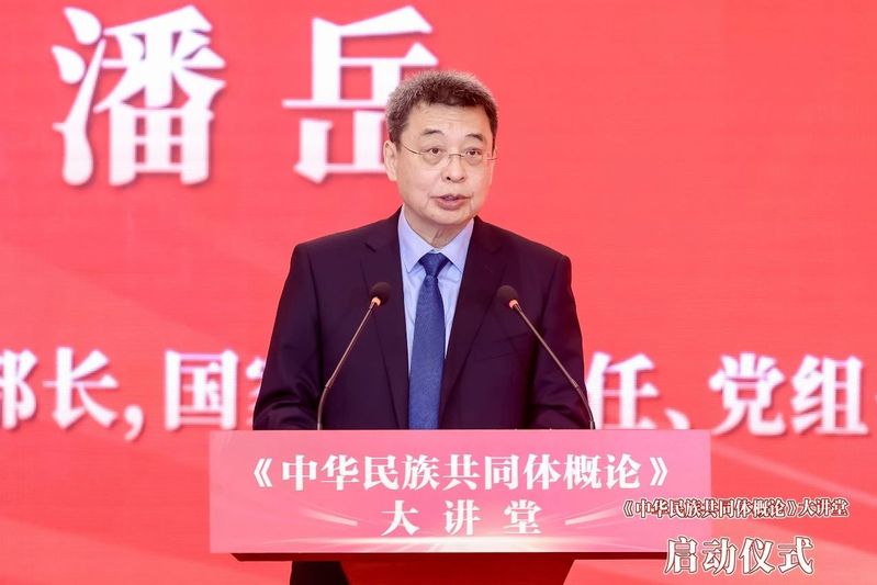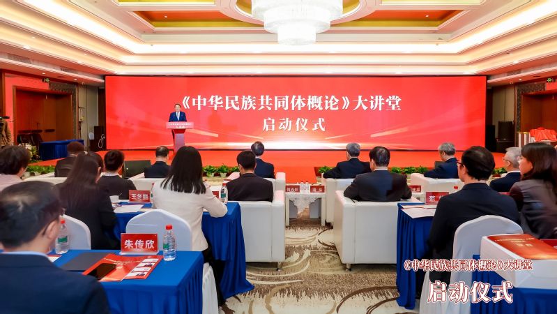 潘岳在致辞中强调,要深入学习宣传贯彻习近平总书记在全国民族团结进步表彰大会上的重要讲话精神,深刻理解中国特色解决民族问题正确道路的内涵特征,始终着眼中华民族的根本利益和整体利益;深刻理解中华民族共同体意识的魂脉和根脉,始终把握党的民族工作的理论指引和文化根基;深刻理解中华民族共同体形成发展的基本规律,始终牢固树立“五个共同”中华民族历史观。按照习近平总书记编好用好《中华民族共同体概论》等教材的重要指示,国家民委组织编写了这本教材,填补了铸牢中华民族共同体意识教育国家统编教材的空白。教材坚持“两个结合”,以中华民族“三交史”为主脉,揭示中华民族共同体从自在到自觉、从传统到现代、从多元凝聚成一体的理论和实践逻辑,构建中华民族共同体史料、话语和理论体系,创新推动马克思主义民族理论中国化最新成果进课堂、进校园。Beat365中文官方网站把《概论》教材以可视化方式创新传播,把历史叙事变成影音图像,推动《概论》从课堂走上荧幕、从校园辐射社会,增强了针对性和吸引力。大讲堂课程视频是推动有形有感有效开展铸牢教育、创新高校思政教育、引导各族青年学子深植共同体理念的全新模式,值得大力推广。