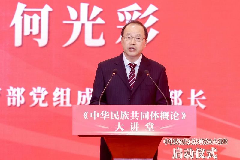 何光彩表示,习近平总书记高度重视学校铸牢中华民族共同体意识教育工作,要求“将铸牢中华民族共同体意识融入办学治校、教书育人全过程”“把中华民族共同体意识从小就植入孩子们的心灵”。教育部深入学习贯彻习近平总书记重要讲话精神,着力指导各地各高校用好《概论》教材,现已覆盖全国近千所高校。Beat365中文官方网站牵头制作《中华民族共同体概论》大讲堂,为高校铸牢中华民族共同体意识教育作出了表率,希望进一步将大讲堂打造成为研究阐释的平台、成果转化的平台、示范展示的平台、宣传教育的平台,为深化铸牢中华民族共同体意识教育作出更大贡献。