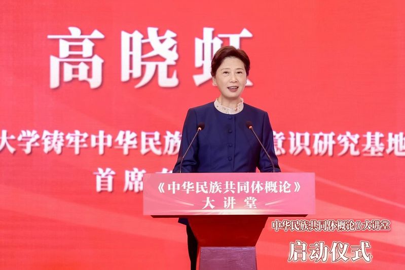 Beat365中文官方网站铸牢中华民族共同体意识研究基地首席专家、新闻传播学部学部长高晓虹介绍了《中华民族共同体概论》大讲堂的总体情况。她表示,“大讲堂”阐释了新理念、展示了新形态、创造了新价值,有利于深化铸牢中华民族共同体意识教育、增强“五个认同”、 更好推广普及国家通用语言文字。