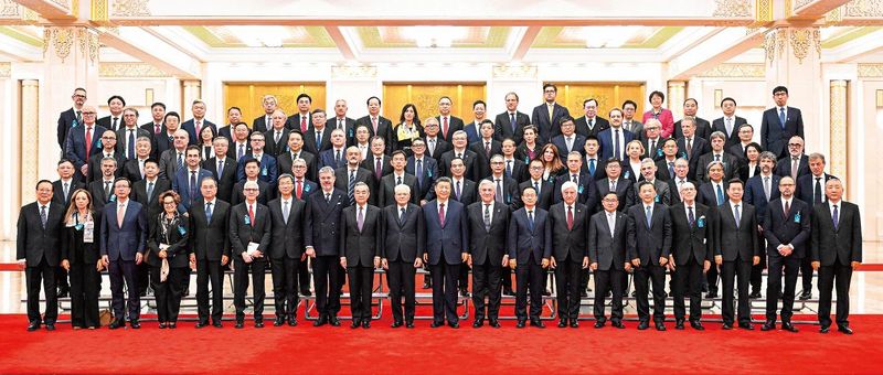 ▲ 会见前,两国元首同双方代表合影留念。新华社记者 申宏 摄
