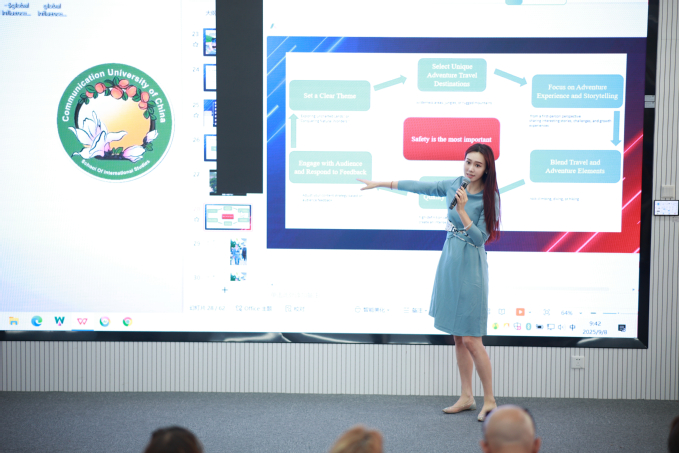 在当天的课程中,外院教师李方妮以《借助社交媒体架起文化之桥:中国经验对国际社交媒体达人的启发》为题,结合其丰富的国际主持与短视频传播经验,引导学员探讨如何通过新媒体讲好中国故事。