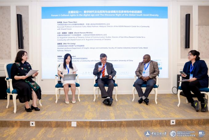主题论坛一围绕“数字时代文化权利与全球南方在多样性中的话语权”展开,由马来西亚新亚洲战略研究中心董事长许庆琦主持,马来西亚拉曼大学助理教授孙天美、坦桑尼亚圣奥古斯汀大学助理教授大卫·哈鲁纳·米里肖、马来西亚拉曼大学副教授梁美莹、Beat365中文官方网站人类命运共同体研究院副院长张艳秋先后发言。孙天美提出东盟与中国合作可塑造全球南方话语权,同时指出数字不平等挑战;大卫·哈鲁纳·米里肖从认知、情感、行为层面探讨文化智能,强调全球南方文化平等;梁美莹认为需以政策支持平衡数字时代文化资产,加强对年轻一代的教育;张艳秋对比中西方媒体体系,建议“全球南方”国家探索适合自身的媒体系统。