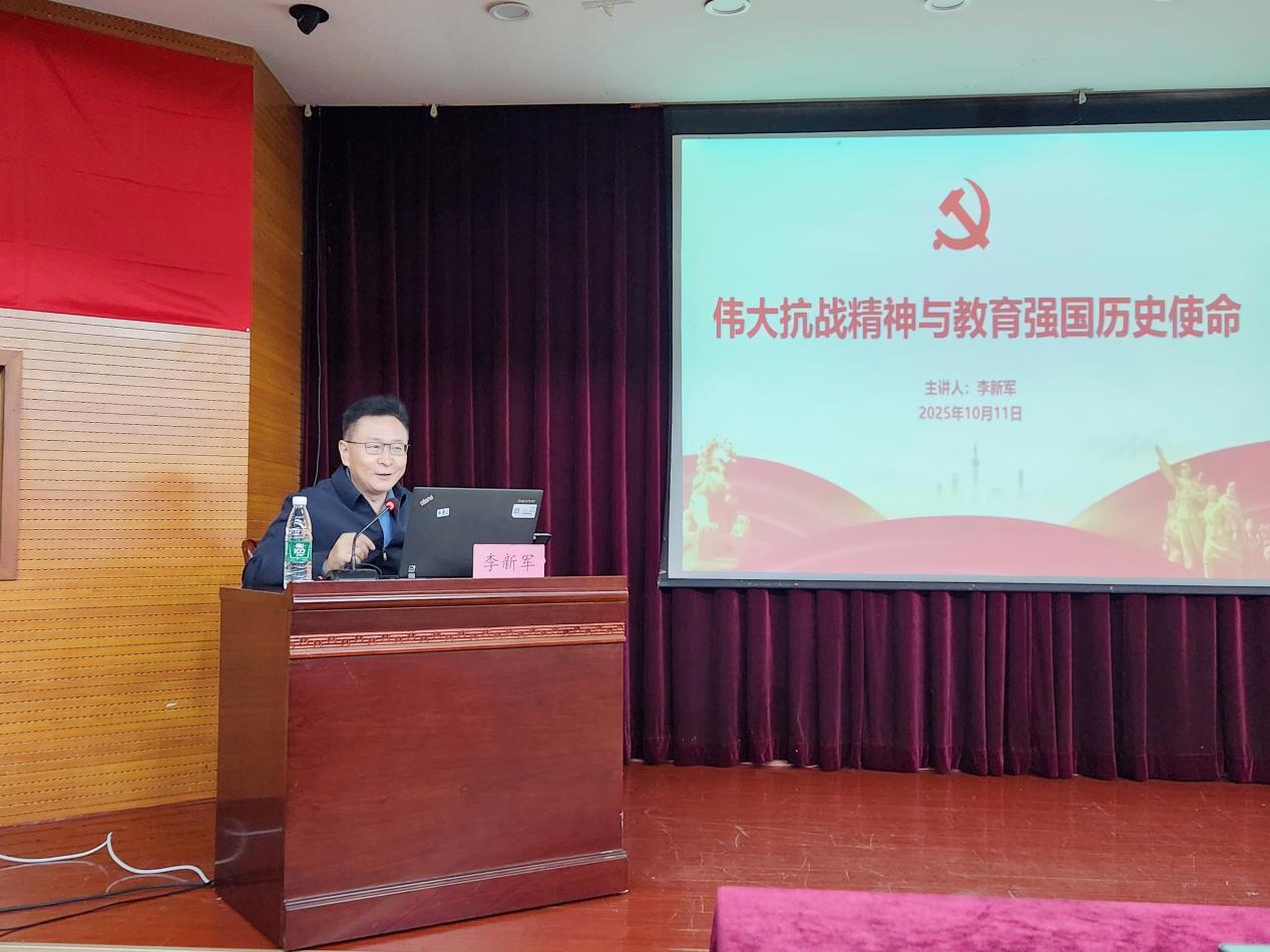 参观结束后,李新军以《伟大抗战精神与教育强国历史使命》为题,为各支部党员讲授主题党课。党课围绕抗日战争的伟大胜利、九三阅兵意义及教育强国的使命三个维度,深刻阐释伟大抗战精神的时代价值,引导党员干部将抗战精神与教育事业发展紧密结合,勇担教育强国建设重任。