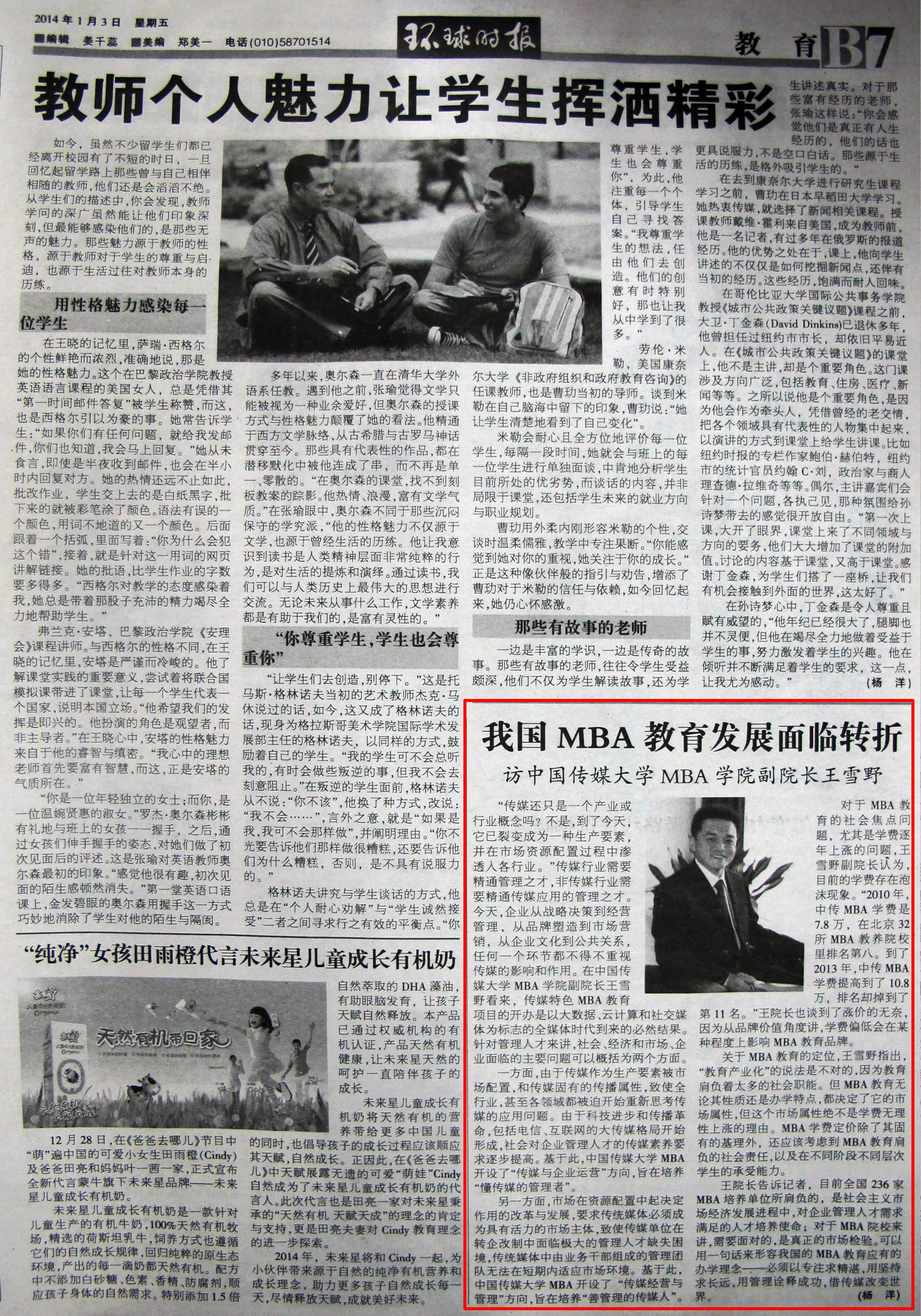 近日,我校MBA学院王雪野副院长接受《环球时报》专访,就我国MBA教育的发展进行了深入解读。 采